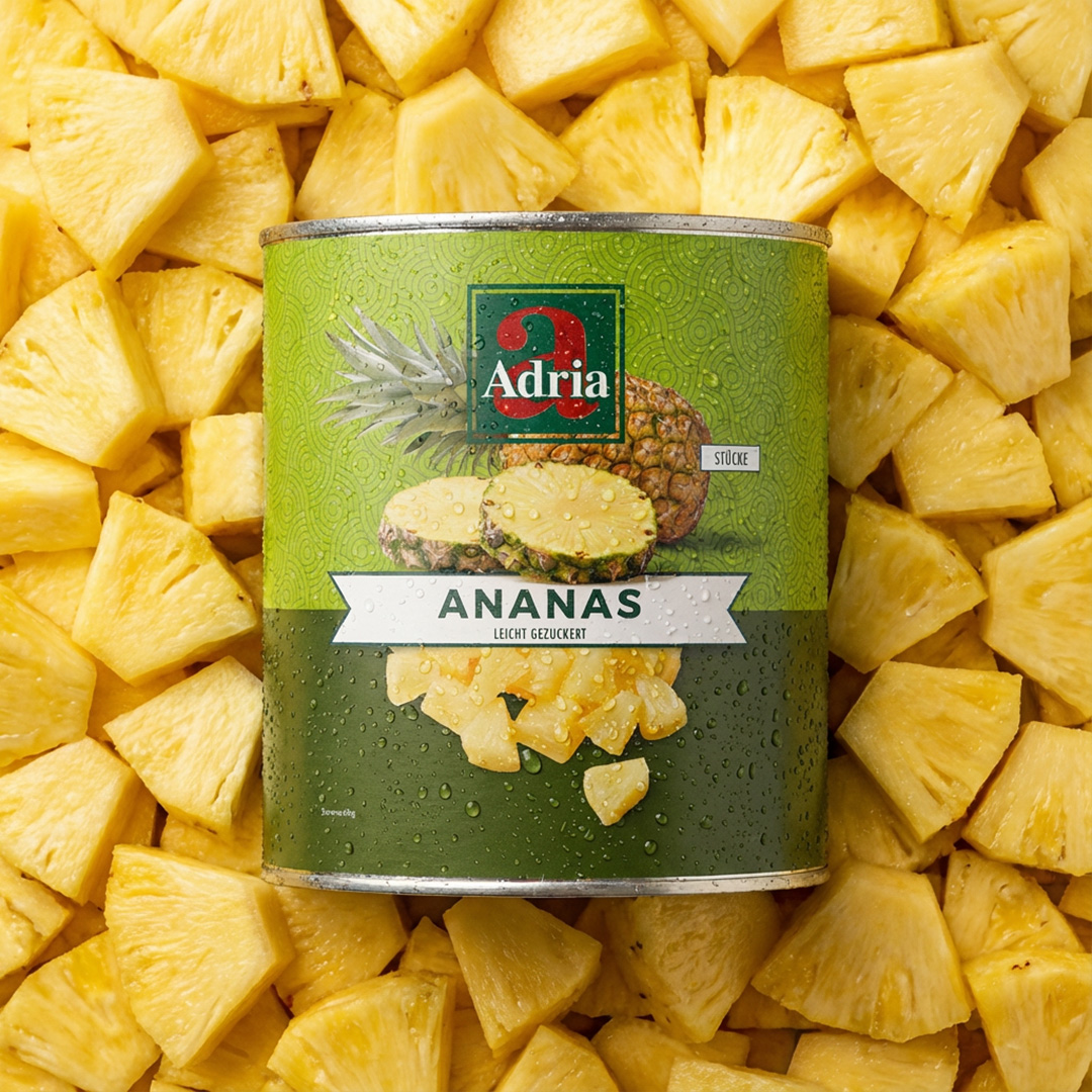 Our Adria pineapple slices are always a good choice in the busy everyday catering business: juicy, lightly sugared, evenly sliced - and ready for immediate use. They can be neatly portioned and ensure a uniform appearance - from the first plate to the last.