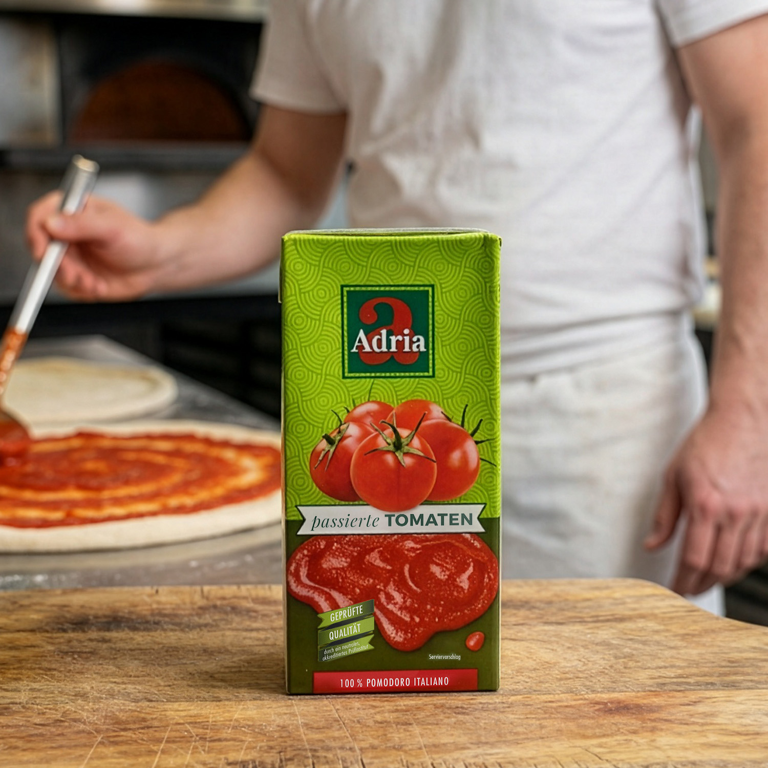 Bella Italia beginnt mit einer guten Passata. Unsere Adria Passata wird aus ganzen, sonnengereiften Tomaten aus Norditalien verarbeitet – aus der Region Emilia Romagna. Durch das feine Passieren entsteht eine cremige, gleichmäßige Textur mit leuchtend roter Farbe und einer natürlich süßlichen, leicht frisch-fruchtigen Note. Als verlässliche Basis gehört Passata zum festen Handwerkszeug der Profiküche. Sie eignet sich ideal für Pizza- und Pastasaucen, Lasagne, Suppen und Schmorgerichte ebenso wie für Fleisch-, Fisch- und Gemüsezubereitungen. Gut streichfähig, gleichmäßig im Kochprozess und vielseitig weiterverarbeitbar, liefert sie konstante Ergebnisse – auch bei hohem Tempo. So steht unsere Adria Passata für italienische Authentizität, effizientes Handling und zuverlässige Qualität – Tag für Tag, Topf für Topf.